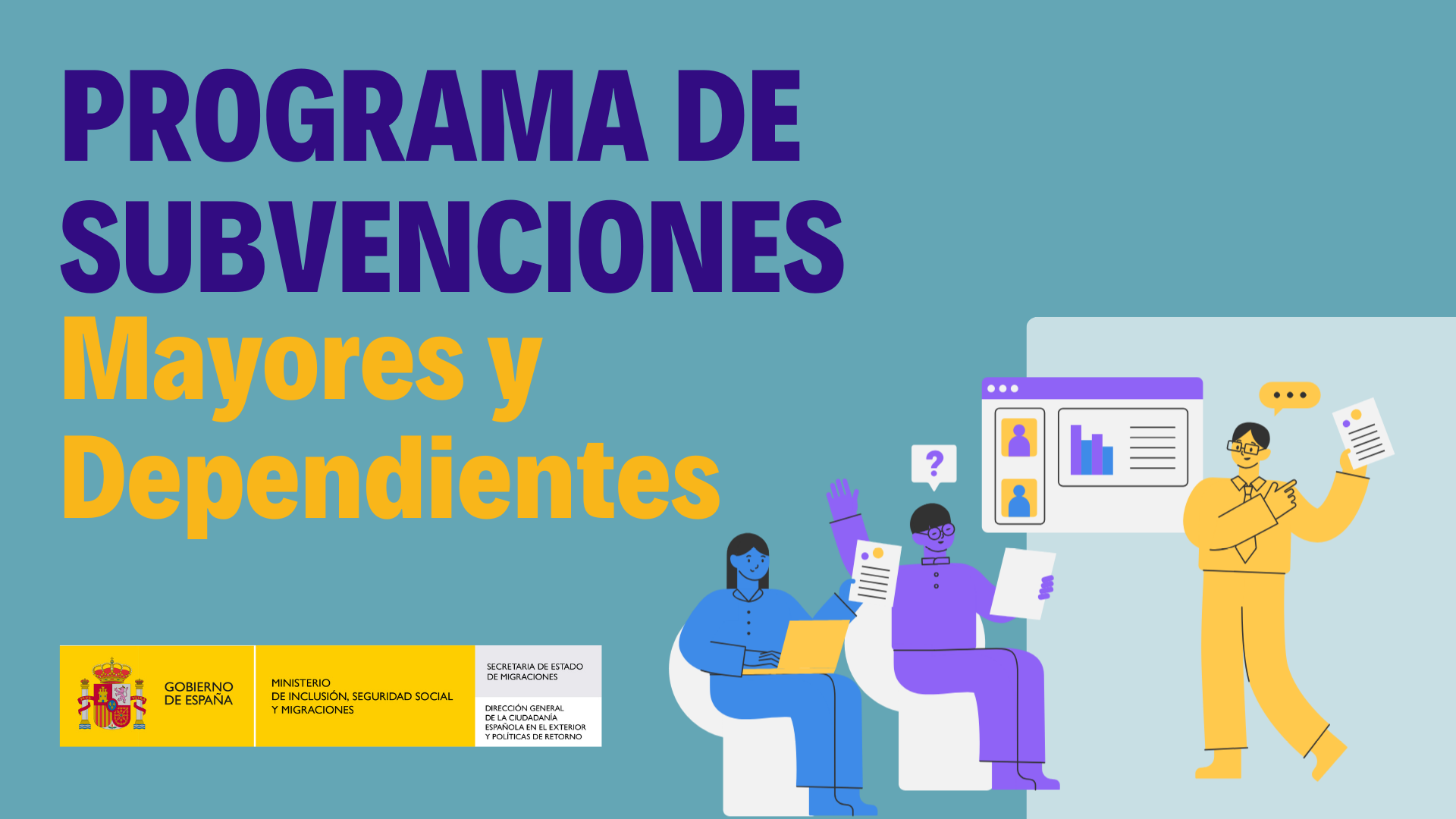 La Dirección General de la Ciudadanía Española en el Exterior y Políticas de Retorno, órgano directivo dependiente de la Secretaría de Estado de Migraciones, tiene encomendadas, entre otras funciones, la gestión de los programas de subvenciones y ayudas destinados a los españoles en el exterior y retornados.