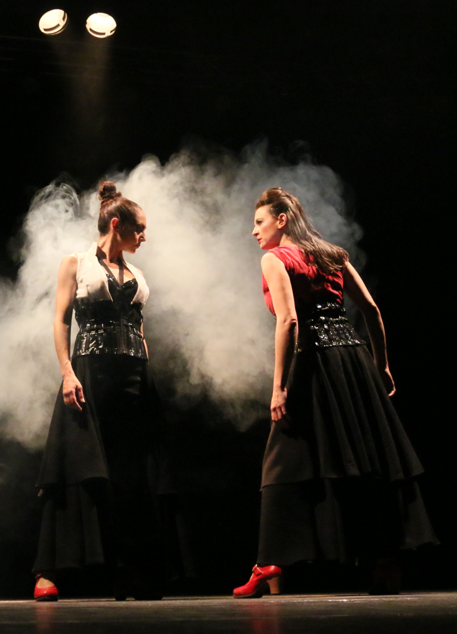 Laura Azcurra, actriz y bailaora, tiene raíces vascas pero hace mucho tiempo se dedica al flamenco. Mariana Astuttti, cree no tener raíces españolas pero hace veinticinco años viene estudiando el  lenguaje flamenco desde Latinoamérica, a nivel teórico y práctico. El impulso creador de ambas, el talento y los caminos diversos del arte las llevaron a hermanarse a través de esta obra que interpretan solo ellas haciendo del espacio un gran despliegue con apenas escenografía, juego de luces y vestuarios alternativos. La tensión en los momentos de baile (tipo pregunta-respuesta) la sincronía de ambas, el juego de sonidos, chasquidos y zapateos emanados de cada momento, crean una atmósfera que vuelve a la obra única y casi imposible de acotarla a un género.