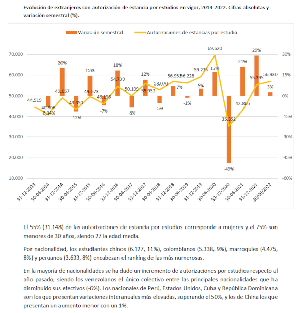 El número de personas con autorización de estancia por estudios en vigor, tanto estudiantes como sus familiares, se sitúa, a 30 de septiembre de 2025, en 56.327.