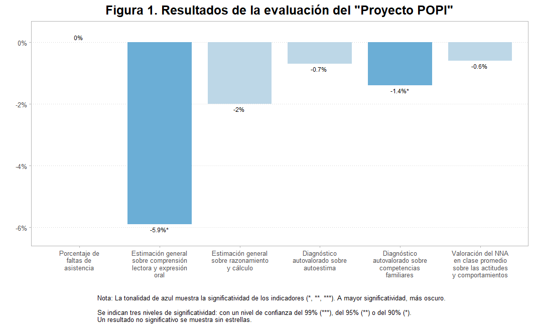 La Figura 1 muestra el porcentaje incremental de cada indicador de resultado principal (medido al final de la intervención) para el grupo de tratamiento comparado con el grupo de control.