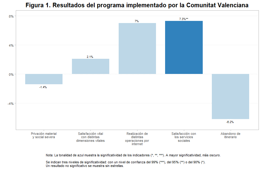 La intervención, que duró 8 meses, desarrolló actividades en los ámbitos de digitalización, y de acompañamiento social y non take-up. El objetivo de la intervención fue evaluar la coordinación de las entidades del Tercer Sector de Acción Social con los servicios sociales de Atención Primaria en la implementación de acciones destinadas a reducir la brecha digital y fortalecer la inclusión social en los colectivos más vulnerables. Las personas participantes se asignaron aleatoriamente entre el grupo de tratamiento o intervención y el grupo de control o comparación. Las personas beneficiarias del grupo de intervención, además de participar en los itinerarios habituales de inclusión implementados por las ETSAS que colaboraron en el proyecto, recibieron, una atención integral personalizada por parte de la persona profesional de referencia se los Servicios Sociales municipales. Estos servicios personalizados incluían un diagnóstico de la situación de vulnerabilidad, la elaboración de un Plan Personalizado de Intervención Social, el seguimiento por la persona profesional de referencia, y la coordinación con otro personal profesional y servicios. Adicionalmente, las personas participantes del grupo de intervención recibieron una capacitación digital centrada en la relación con la Administración y el acceso a recursos públicos por medios electrónicos. Las personas del grupo de comparación solamente participaron en los itinerarios ofertados por las ETSAS en las condiciones habituales de los mismos. 1.481 personas participaron en este proyecto, de las cuales 668 formaban parte del grupo control, 672 del grupo tratamiento, y 141 fueron asignadas a reserva. Tras las bajas iniciales y las sustituciones, finalmente participaron 703 personas en el grupo de tratamiento y 704 en el grupo de control.