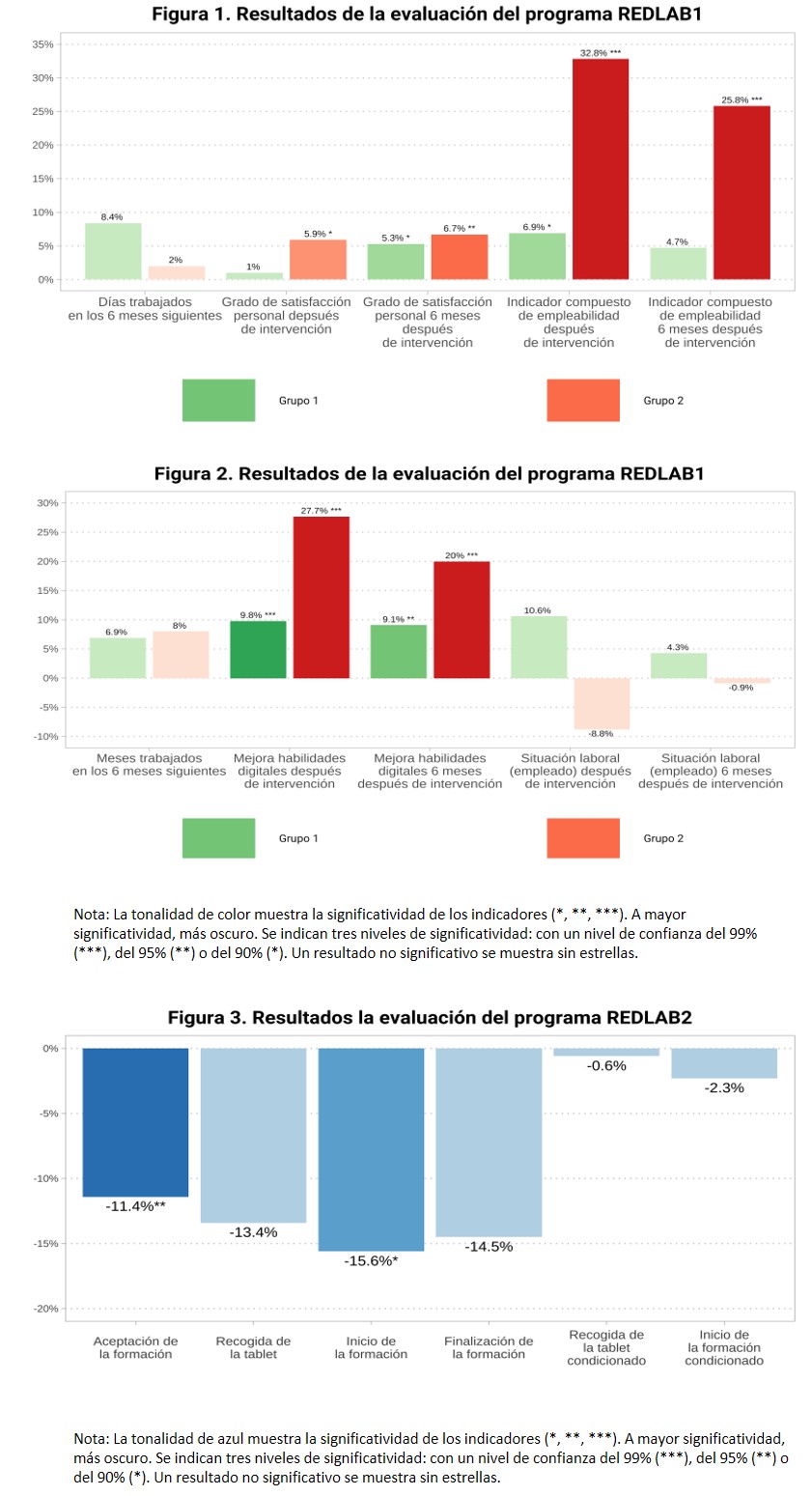 Los resultados de la evaluación de la intervención diferencial recibida únicamente por el grupo de tratamiento de REDLAB2 fueron los siguientes: