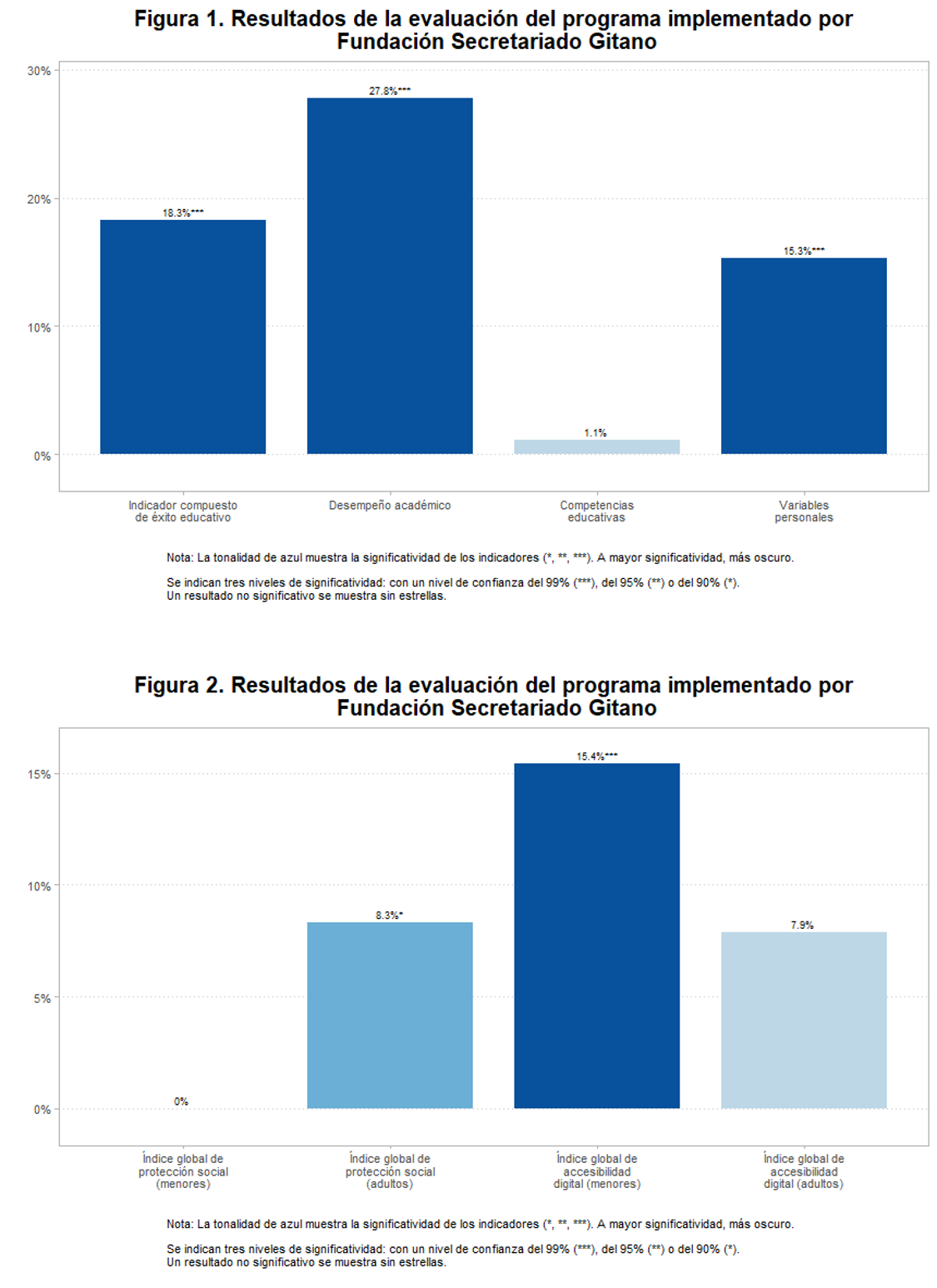 La Figura 1 muestra el porcentaje incremental de cada indicador de resultado principal (medido al final de la intervención) para el grupo de tratamiento comparado con el grupo de control.